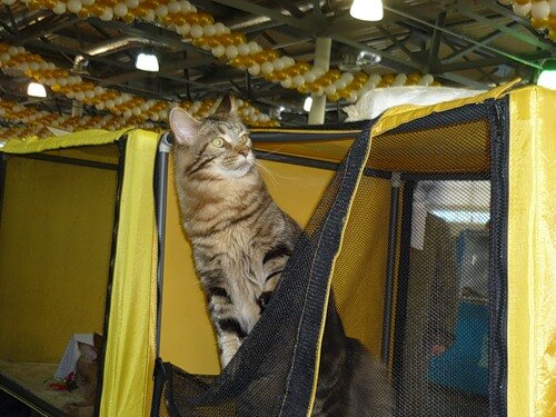 Ой как хорошо написано!Я на выставке наблюдала за поведением кошку. Подумала, что вряд ли бы моя Кыся набралась такого терпения и вела там себя прилично.К счастью, мы не выставочные. Предлагали нам стерилизовать Кысю, чтоб выставлять в категории домашних любимцев, но муж категорически против. Сидим дома и не знаем таких страданий, но и лишены радости общения. 🙂